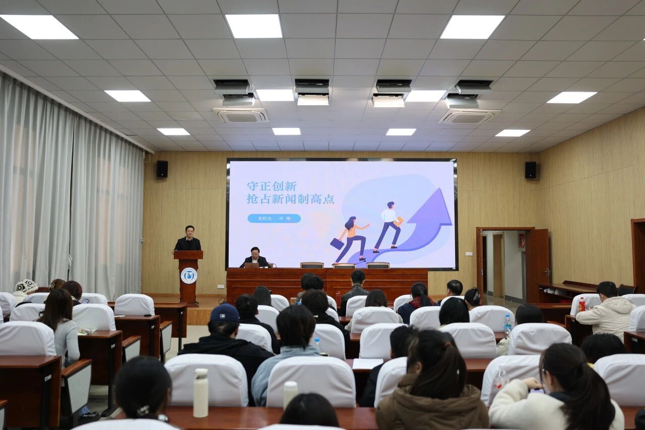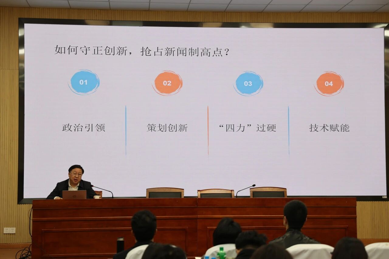 首期讲坛,以“守正创新,抢占新闻制高点”为题,作了一场既有理性思考、又颇具实践性的新闻业务讲座。讲座由巨乳做爱