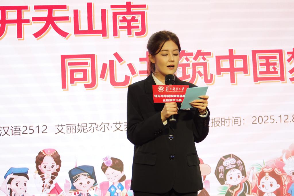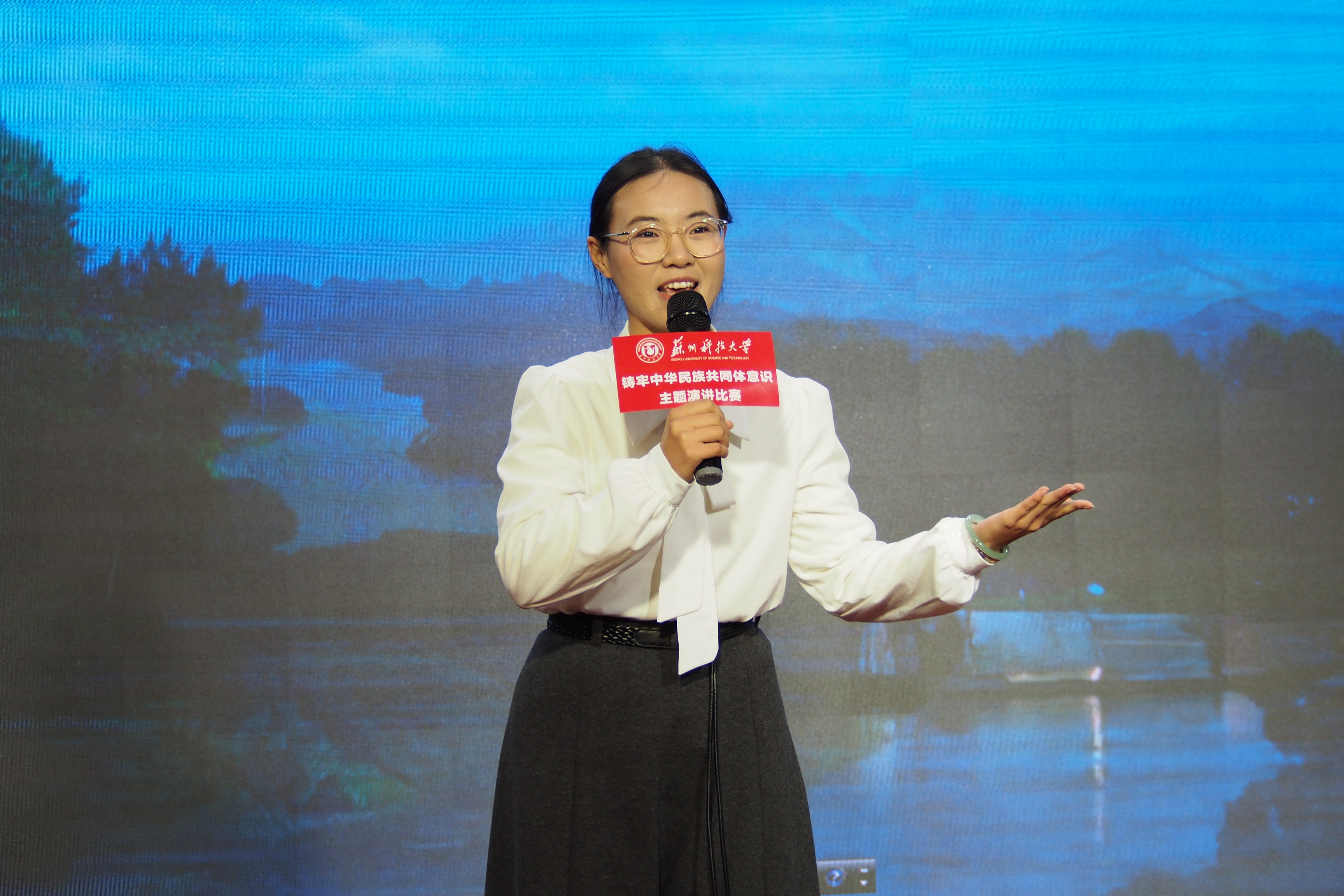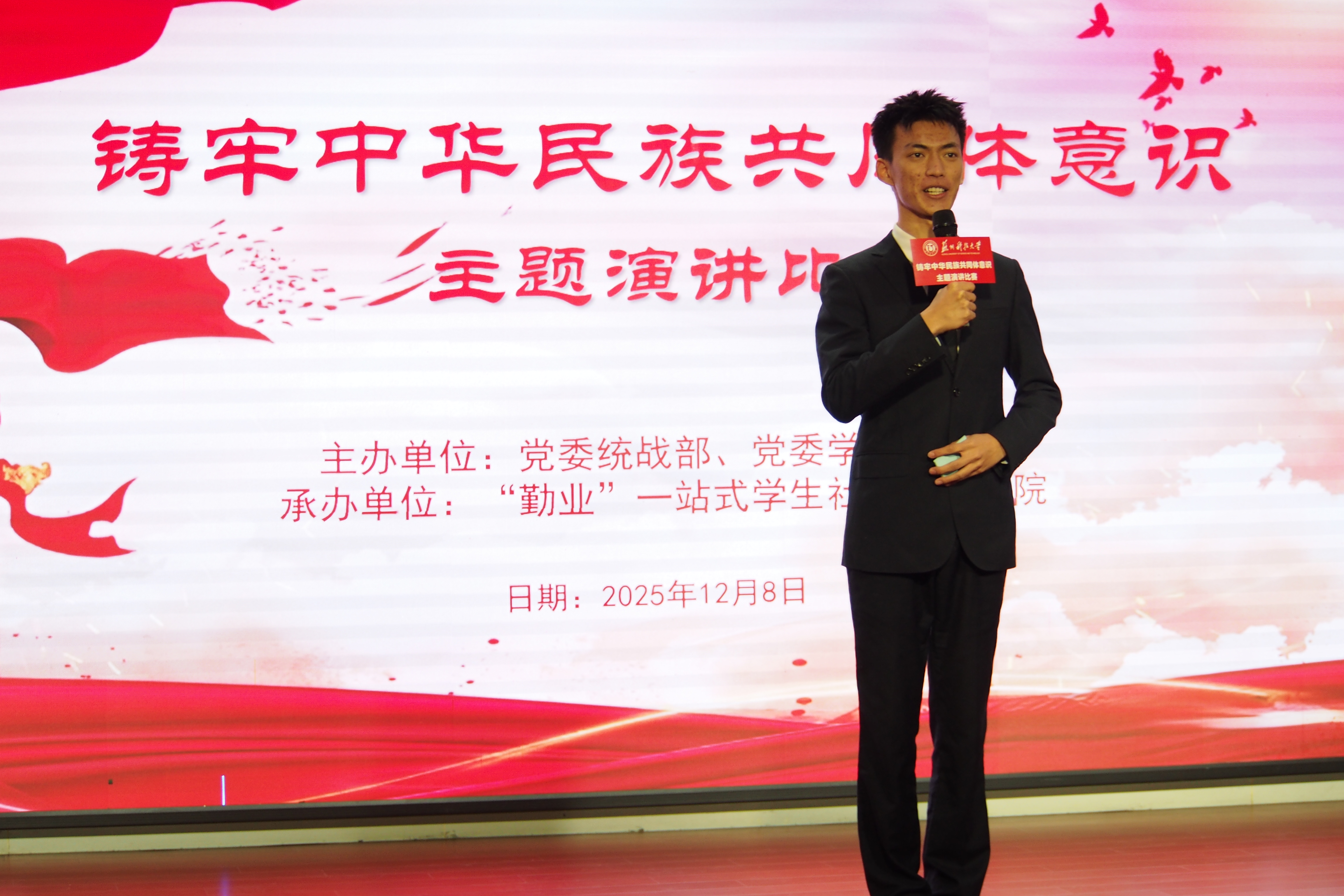 、不同专业的参赛选手紧扣核心主题,结合自身成长体验、学术认知与社会观察展开深度分享。部分选手从中华优秀传统文化传承切入,梳理各民族在历史长河中文化互鉴、习俗相融的鲜活案例,阐释共同体意识的深厚历史底蕴;还有选手立足时代发展大局,结合国家政策与民族地区发展成就,表达青年学子投身民族复兴事业、助力各民族共同繁荣的责任与担当。选手们的演讲内容扎实、视角多元,既展现了对主题的深刻理解,也传递了当代大学生的家国情怀,赢得现场观众的广泛共鸣。