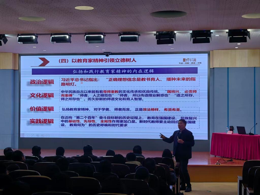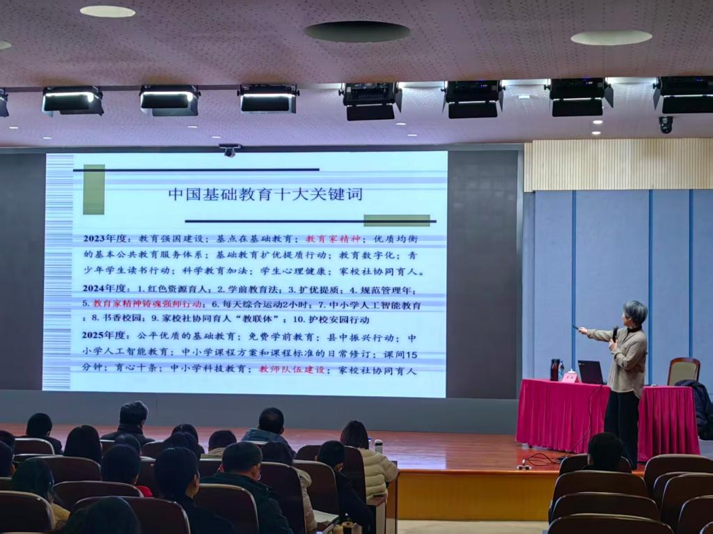 治理与能力建设、新任校长的时代坐标与教育使命、教育家精神与当代弘扬等主题展开专题讲座,深度剖析新时代义务教育阶段校长的角色定位与履职要点,以鲜活的实践案例、严密的逻辑论证深刻阐明教育家精神的时代价值与实践路径。