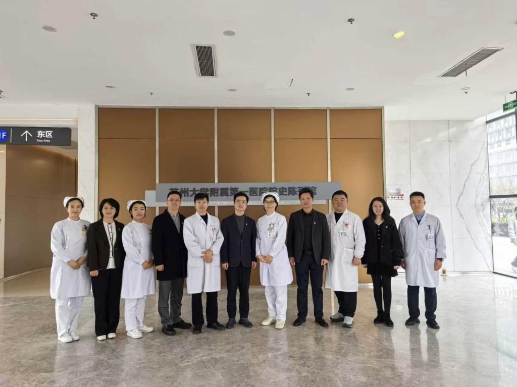 一行的到来表示热烈欢迎。苏大附一院康复医学科科主任、党支部书记朱红军详细介绍了科室在临床康复、健康科普、公益服务、党建引领科室发展等方面的工作成果,并与季海君完成党建联建签约仪式。双方一致同意,以“党建引领、医文携手、双向赋能、惠民利民”为核心,建立常态化理论联学机制。座谈会后,双方共同参观苏州大学附属第一医院院史馆。