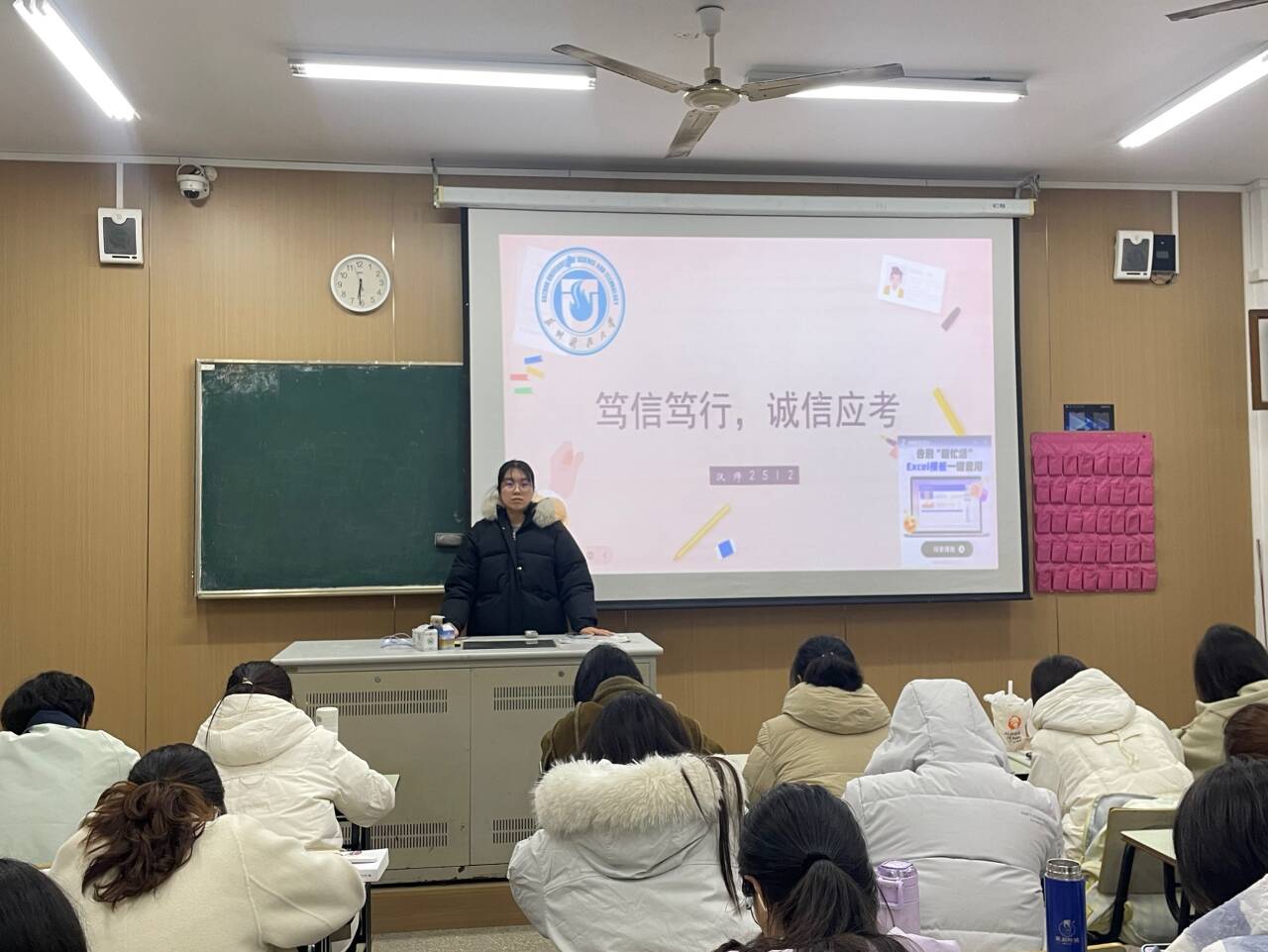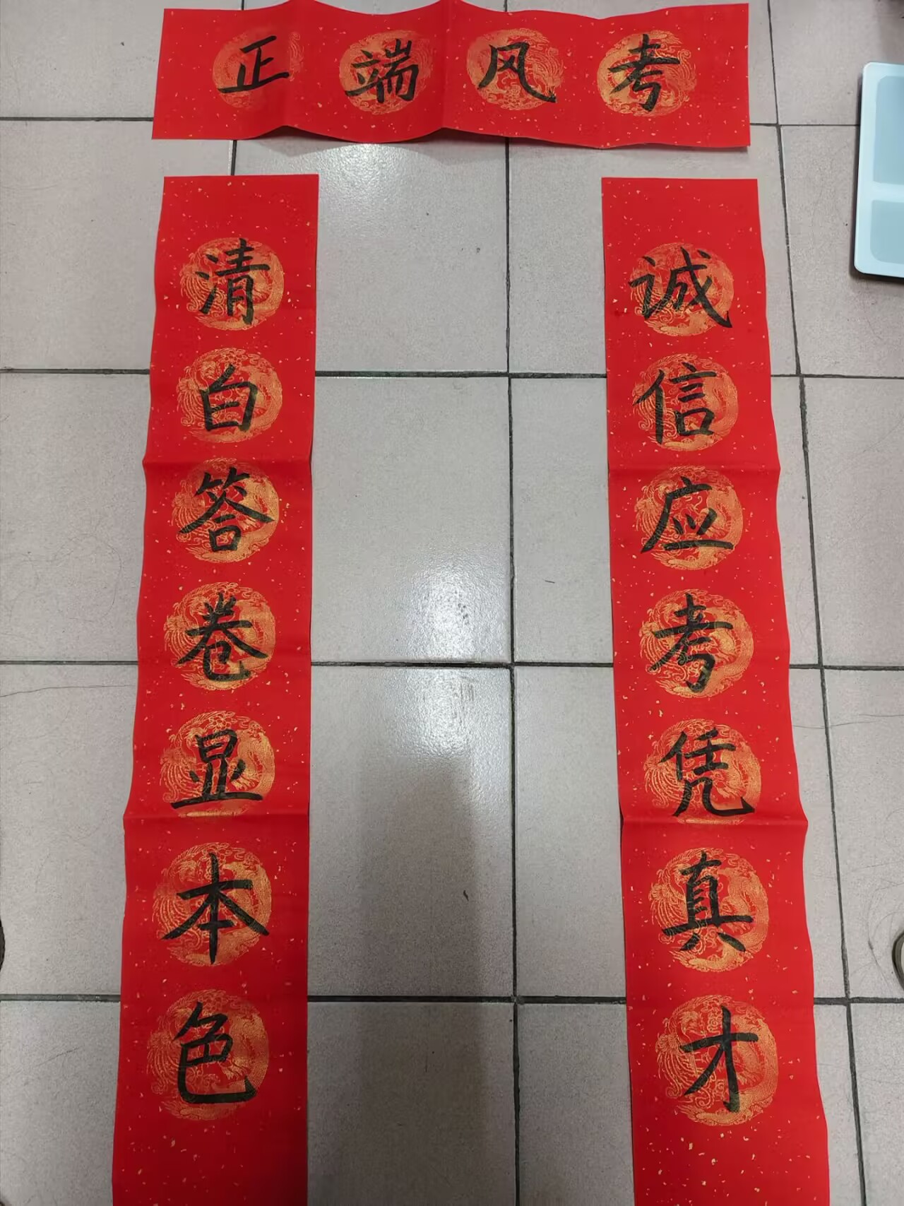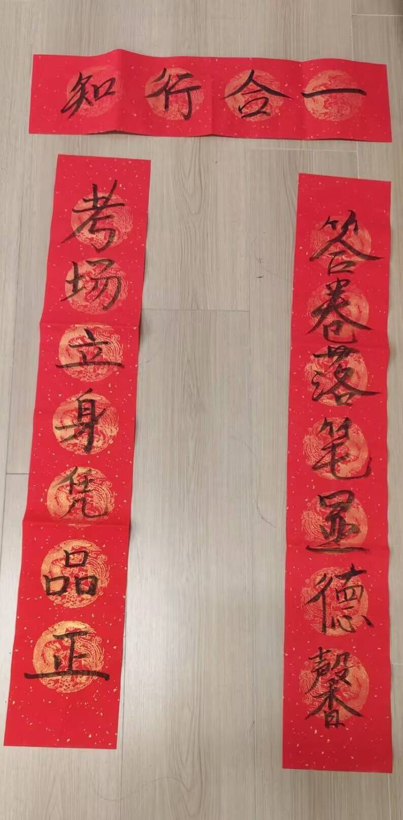 汉语2512的班长从“诚信是立人之根本”入手,通过组织同学们抄写《诚信考试承诺书》、创作诚信考试对联,强化了同学们的诚信考试意识。此外,汉语2512班长提醒同学们要做好期末复习,为大一上学期画上圆满句号。