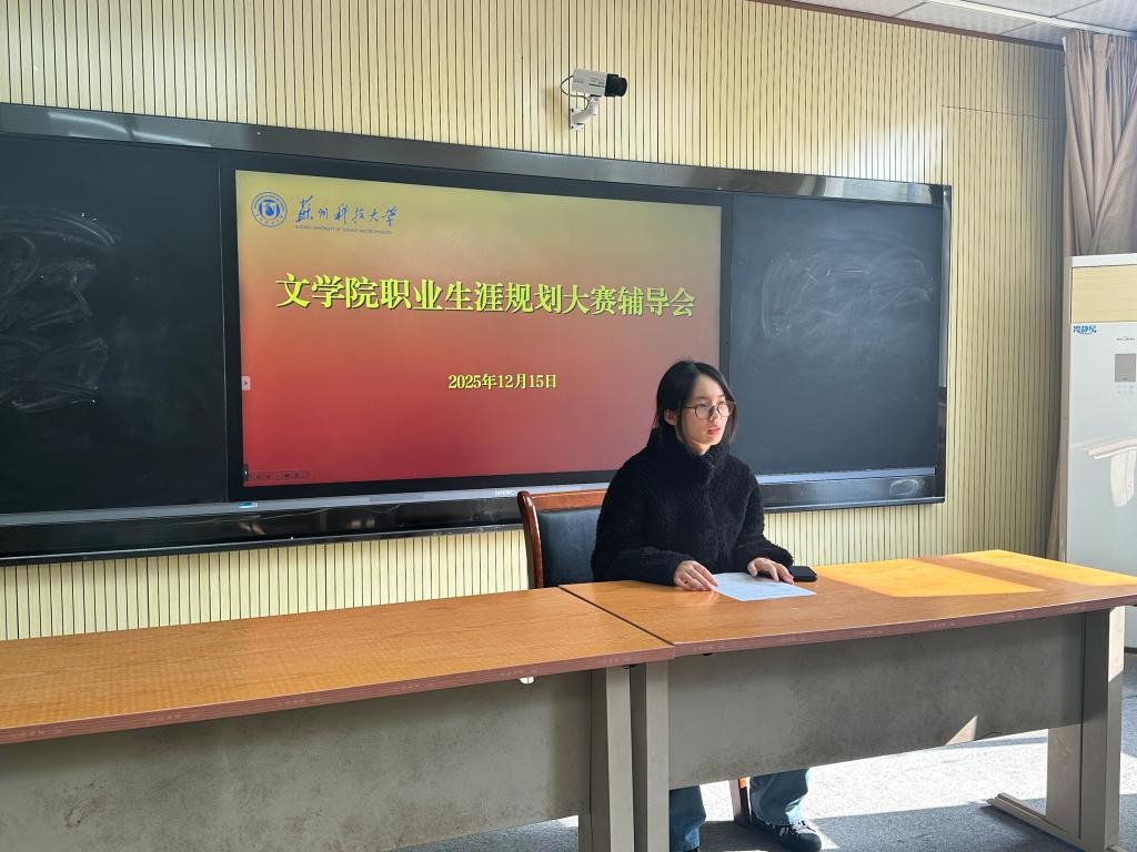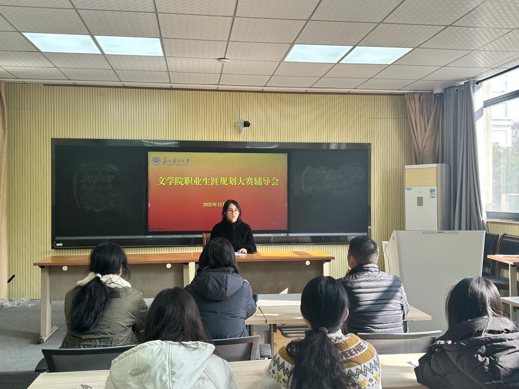 职业生涯规划大赛辅导会在教五103举行。校职业生涯规划大赛获奖者、23级汉师专业陈锦同学分享备赛经验,活动由巨乳做爱