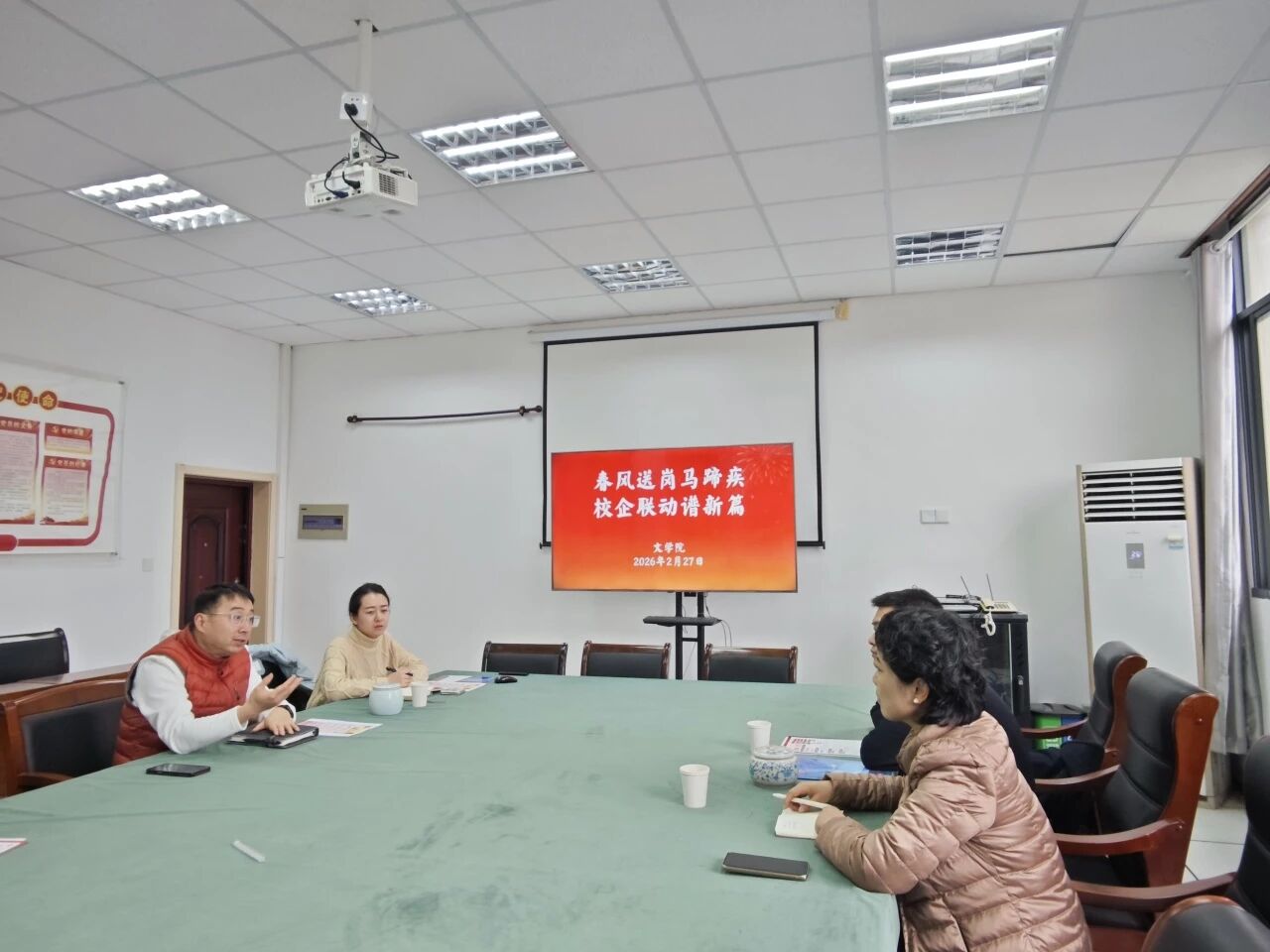 ,开展校企合作洽谈交流。党委副书记瞿晓庆、2026届毕业班辅导员张弛热情接待来访,双方围绕人才供需、实习基地建设、联合培养等议题展开深入研讨。
